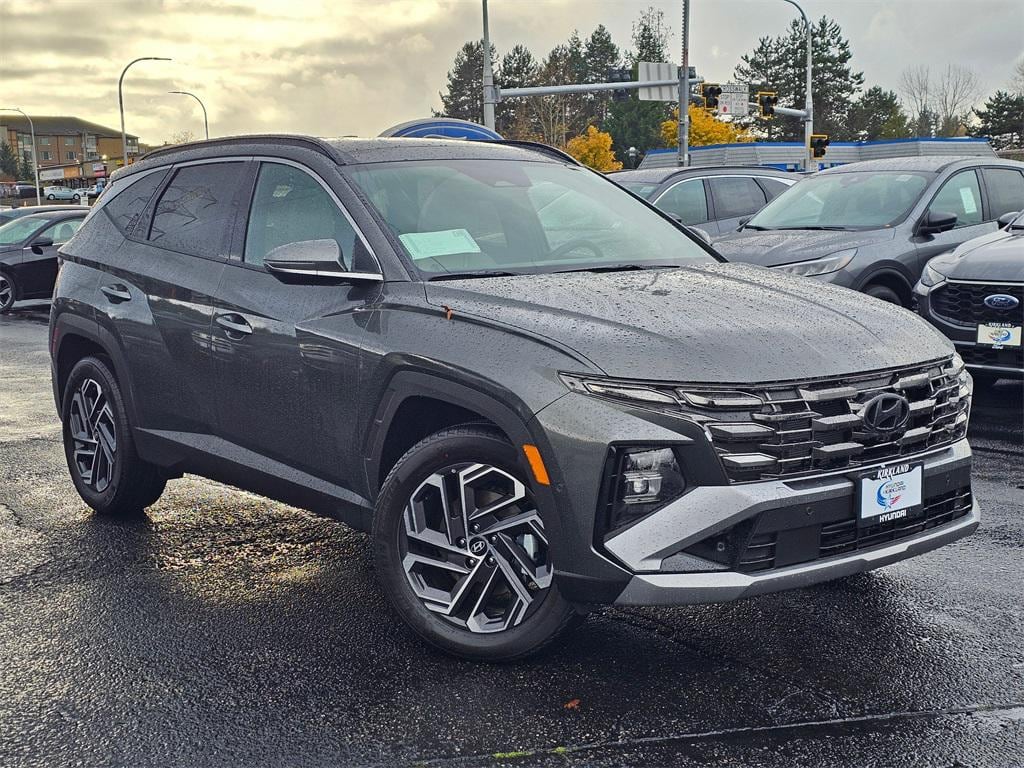 1.6L I4 DGI Hybrid Turbocharged DOHC 16V LEV3-SULEV30 6-Speed Automatic AWD 4D Sport Utility Amazon Gray 1.6L I4 DGI Hybrid Turbocharged DOHC 16V LEV3-SULEV30, 4-Wheel Disc Brakes, 8 Speakers, ABS brakes, Air Conditioning, All Season Fitted Liners, Alloy wheels, AM/FM radio: SiriusXM, Apple CarPlay & Android Auto, Auto High-beam Headlights, Auto-dimming Rear-View mirror, Automatic temperature control, Brake assist, Bumpers: body-color, Cargo Cover, Cargo Net, Cargo Tray, Carpeted Floor Mats, Delay-off headlights, Driver door bin, Driver vanity mirror, Dual front impact airbags, Dual front side impact airbags, Electronic Stability Control, Emergency communication system: Bluelink+, First Aid Kit, Four wheel independent suspension, Front anti-roll bar, Front Bucket Seats, Front Center Armrest, Front dual zone A/C, Front reading lights, Fully automatic headlights, Garage door transmitter: HomeLink, Heads-Up Display, Heated & Ventilated Front Bucket Seats, Heated door mirrors, Heated front seats, Heated rear seats, Heated steering wheel, Illuminated entry, Leather steering wheel, Leather-Trimmed Seat Trim, Low tire pressure warning, Memory seat, Navigation System, Occupant sensing airbag, Option Group 01, Outside temperature display, Overhead airbag, Overhead console, Panic alarm, Passenger door bin, Passenger vanity mirror, Power door mirrors, Power driver seat, Power Liftgate, Power moonroof, Power passenger seat, Power steering, Power windows, Radio data system, Radio: Bose Premium w/AM/FM/HD Audio System, Rain sensing wipers, Rear anti-roll bar, Rear reading lights, Rear seat center armrest, Rear side impact airbag, Rear window defroster, Rear window wiper, Remote keyless entry, Roof Rack Cross Rails, Security system, Speed control, Split folding rear seat, Spoiler, Steering wheel mounted audio controls, Tachometer, Telescoping steering wheel, Tilt steering wheel, Traction control, Trip computer, Turn signal indicator mirrors, Variably intermittent wipers, Ventilated front seats, Wheels: 19" x 7.5J Alloy, 1.6L I4 DGI Hybrid Turbocharged DOHC 16V LEV3-SULEV30. Prices good through 5-31-2025. Kirkland Price includes:$3000 - Hyundai HMF Dealer Choice : $3000 discount and 5.49% APR for 24 months. $44.09 per $1000 financed. Available to well qualified buyers who finance through Hyundai Motor Finance. H704.