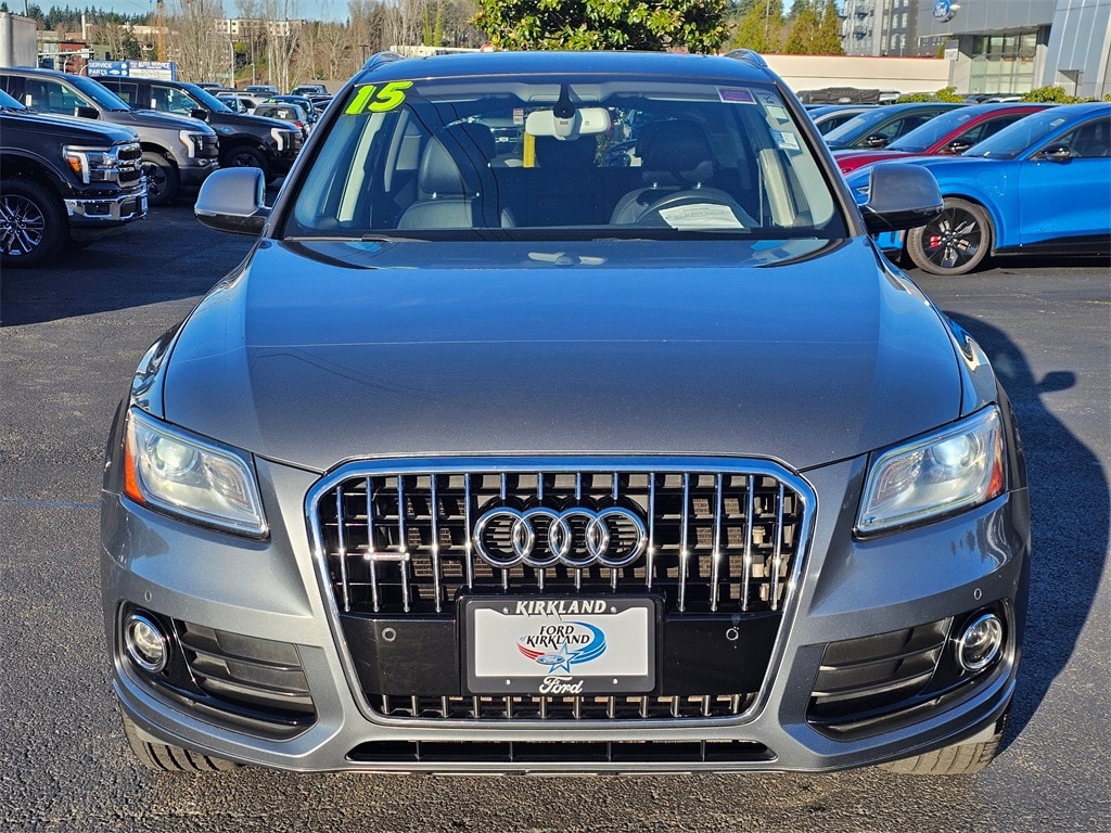 CARFAX One-Owner. Black Leather, 10 Speakers, 2.84 Axle Ratio, 4-Wheel Disc Brakes, ABS brakes, Air Conditioning, Alloy wheels, Aluminum Trunk Edge Trim & Door Sills, AM/FM radio, Audi Advanced Key, Audi Connect w/Online Services, Audi Guard Protection Kit, Audi Parking System Plus w/Rear View Camera, Audi Side Assist, Auto-Dimming Interior Mirror w/Compass, Automatic temperature control, Brake assist, Bumpers: body-color, Cargo Net, CD player, Color Driver Information System w/Trip Computer, Delay-off headlights, Driver door bin, Driver Side Memory, Driver vanity mirror, Dual front impact airbags, Dual front side impact airbags, Electronic Stability Control, Four wheel independent suspension, Front anti-roll bar, Front Bucket Seats, Front Center Armrest, Front dual zone A/C, Front fog lights, Front reading lights, Garage door transmitter: HomeLink, Genuine wood console insert, Genuine wood dashboard insert, Genuine wood door panel insert, Heated Auto-Dimming & Power-Folding Mirrors, Heated door mirrors, Heated Front Seats, High intensity discharge headlights: Xenon plus, Illuminated entry, Leather Seating Surfaces, Leather Shift Knob, Leather steering wheel, Low tire pressure warning, Occupant sensing airbag, Outside temperature display, Overhead airbag, Overhead console, Panic alarm, Panorama Sunroof, Passenger door bin, Passenger vanity mirror, Power door mirrors, Power driver seat, Power Front Bucket Seats, Power Liftgate, Power passenger seat, Power steering, Power windows, Premium Plus Package, Radio data system, Radio: Audi MMI Navigation Plus System, Radio: Audi MMI Plus System w/6.5" Color Screen, Rain sensing wipers, Rear air conditioning, Rear anti-roll bar, Rear fog lights, Rear reading lights, Rear seat center armrest, Rear window defroster, Rear window wiper, Remote keyless entry, Roof rack, Security system, Speed control, Speed-sensing steering, Speed-Sensitive Wipers, Split folding rear seat, Spoiler, Steering wheel mounted audio controls, Tachometer, Technology Package, Telescoping steering wheel, Tilt steering wheel, Traction control, Trip computer, Turn signal indicator mirrors, Variably intermittent wipers, Wheels: 8.0J x 18" 5-V-Spoke-Design, Wheels: 8.0J x 19" 5-Arm Star Design, Black Leather. 2015 Audi Q5 2.0T Premium Plus quattro 2.0L 4-Cylinder TFSI 8-Speed Automatic with Tiptronic quattro 4D Sport Utility Monsoon Gray Metallic