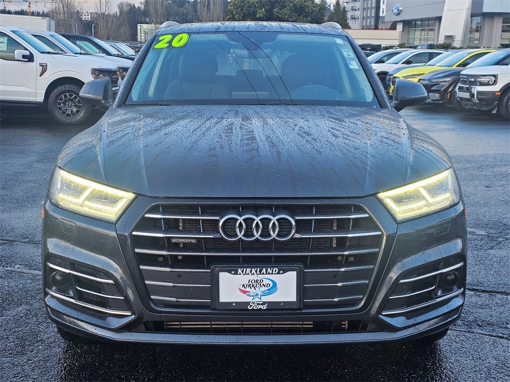 Clean CARFAX. CARFAX One-Owner. ONE OWNER, 2.0L 4-Cylinder TFSI, Adaptive Cruise Control w/Traffic Jam Assist, All-Weather Floor Mats, Audi Active Lane Assist, Audi Advanced Key, Audi Phone Box, Audi Pre Sense Rear, Audi Side Assist, Auto-Dimming Power Folding Exterior Mirrors, Bang & Olufsen Sound System w/3D Sound, Cold Weather Package, Convenience Package, Convenience Plus Package, Driver Assistance Package, Driver Seat Memory, Heated Rear Seats, Heated Steering Wheel, Leatherette Covered Center Console & Door Armrests, LED Headlights, Manual Rear Side Window Sunshades, Panoramic Sunroof, Parking System Plus (Front/Rear Acoustic Sensors), Premium Plus Package, USB Charge Ports for Rear Seats, Ventilated Front Sport Seats w/4-Way Power Lumbar, Warm Weather Package, 10 Speakers, 4-Wheel Disc Brakes, ABS brakes, Air Conditioning, Alloy wheels, AM/FM radio: SiriusXM, Audi smartphone interface (Apple CarPlay/Android Auto), Auto High-beam Headlights, Auto-dimming Rear-View mirror, Automatic temperature control, Axle Ratio: TBD, Brake assist, Bumpers: body-color, Compass, Delay-off headlights, Driver door bin, Driver vanity mirror, Dual front impact airbags, Dual front side impact airbags, Electronic Stability Control, Emergency communication system: Audi connect CARE, Exterior Parking Camera Rear, Four wheel independent suspension, Front anti-roll bar, Front Bucket Seats, Front Center Armrest, Front dual zone A/C, Front fog lights, Front reading lights, Garage door transmitter: HomeLink, Genuine wood console insert, Genuine wood dashboard insert, Genuine wood door panel insert, Heated 8-Way Power Front Seats, Heated door mirrors, Heated front seats, High intensity discharge headlights: Xenon plus, Illuminated entry, Leather Seating Surfaces, Leather Shift Knob, Leather steering wheel, Low tire pressure warning, Navigation system: MMI Navigation plus, Occupant sensing airbag, Outside temperature display, Overhead airbag, Overhead console, Panic alarm, Passenger door bin, Passenger vanity mirror, Power door mirrors, Power driver seat, Power Liftgate, Power passenger seat, Power steering, Power windows, Radio data system, Radio: MMI Navigation Plus w/MMI Touch, Rain sensing wipers, Rear air conditioning, Rear anti-roll bar, Rear fog lights, Rear reading lights, Rear seat center armrest, Rear window defroster, Rear window wiper, Remote keyless entry, Roof rack, Security system, Speed control, Speed-sensing steering, Speed-Sensitive Wipers, Split folding rear seat, Spoiler, Sport steering wheel, Steering wheel mounted audio controls, Tachometer, Telescoping steering wheel, Tilt steering wheel, Traction control, Trip computer, Turn signal indicator mirrors, Variably intermittent wipers, Wheels: 19" 5-Spoke-V Design w/Bi-Color Finish, 2.0L 4-Cylinder TFSI, Adaptive Cruise Control w/Traffic Jam Assist, All-Weather Floor Mats, Audi Active Lane Assist, Audi Advanced Key, Audi Phone Box, Audi Pre Sense Rear, Audi Side Assist, Auto-Dimming Power Folding Exterior Mirrors, Bang & Olufsen Sound System w/3D Sound, Cold Weather Package, Convenience Package, Convenience Plus Package, Driver Assistance Package, Driver Seat Memory, Heated Rear Seats, Heated Steering Wheel, Leatherette Covered Center Console & Door Armrests, LED Headlights, Manual Rear Side Window Sunshades, Panoramic Sunroof, Parking System Plus (Front/Rear Acoustic Sensors), Premium Plus Package, USB Charge Ports for Rear Seats, Ventilated Front Sport Seats w/4-Way Power Lumbar, Warm Weather Package. 2020 Audi Q5 e 55 Premium Plus quattro 2.0L 4-Cylinder TFSI 7-Speed Automatic S tronic quattro 4D Sport Utility Manhattan Gray Metallic