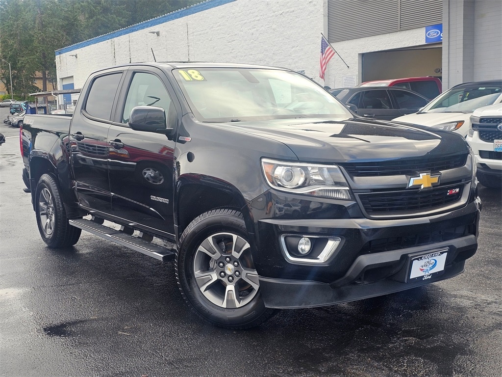 Clean CARFAX. CARFAX One-Owner. LEATHER, ONE OWNER, 4WD, Bose Premium 7-Speaker Audio System Feature, Leather-Appointed Seat Trim, 3.42 Rear Axle Ratio, 4-Way Power Front Passenger Seat Adjuster, 4-Wheel Disc Brakes, 5" Rectangular Chrome Assist Steps (LPO), ABS brakes, Air Conditioning, Alloy wheels, AM/FM radio: SiriusXM, Apple CarPlay, Auto-dimming Rear-View mirror, Automatic temperature control, Bumpers: body-color, Compass, Delay-off headlights, Driver 4-Way Power Seat Adjuster, Driver door bin, Driver vanity mirror, Dual front impact airbags, Dual front side impact airbags, Electronic Stability Control, Engine Block Heater, Exhaust Brake, Exterior Parking Camera Rear, Front & Rear Splash Guards, Front anti-roll bar, Front Bucket Seats, Front Center Armrest, Front fog lights, Front License Plate Kit, Front reading lights, Front wheel independent suspension, Fully automatic headlights, Heated door mirrors, Heated Driver & Front Passenger Seats, Heated front seats, Heavy-Duty Trailering Package, Illuminated entry, Integrated Trailer Brake Controller, Low tire pressure warning, Occupant sensing airbag, Outside temperature display, Overhead airbag, Overhead console, Panic alarm, Passenger door bin, Passenger vanity mirror, Power door mirrors, Power Driver Lumbar Control Seat Adjuster, Power driver seat, Power Passenger Lumbar Control Seat Adjuster, Power passenger seat, Power steering, Power windows, Preferred Equipment Group 4Z7, Premium audio system: Chevrolet MyLink, Radio data system, Radio: AM/FM Stereo w/8" Diagonal Color Touch Nav., Radio: AM/FM Stereo w/8" Diagonal Color Touch Screen, Rear reading lights, Rear seat center armrest, Rear step bumper, Rear window defroster, Remote keyless entry, Security system, SiriusXM Satellite Radio, Speed control, Speed-sensing steering, Steering wheel mounted audio controls, Tachometer, Telescoping steering wheel, Tilt steering wheel, Traction control, Trip computer, Variably intermittent wipers, Wheels: 17" x 8" Dark Argent Metallic Cast Alloy, 4WD, Bose Premium 7-Speaker Audio System Feature, Leather-Appointed Seat Trim. 2018 Chevrolet Colorado Z71 2.8L Duramax Turbodiesel 6-Speed Automatic 4WD 4D Crew Cab Black