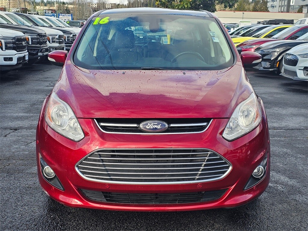 Odometer is 42717 miles below market average! I4 Hybrid, 4-Wheel Disc Brakes, 6 Speakers, ABS brakes, Active Park Assist w/Front Sensing System, Air Conditioning, Alloy wheels, AM/FM radio: SiriusXM, AM/FM/CD/MP3 Radio, Auto-dimming Rear-View mirror, Automatic temperature control, Brake assist, Bumpers: body-color, CD player, Compass, Delay-off headlights, Driver door bin, Driver vanity mirror, Dual front impact airbags, Dual front side impact airbags, Electronic Stability Control, Emergency communication system, Equipment Group 303A, Exterior Protection Package, Four wheel independent suspension, Front & Rear Molded Splash Guards, Front anti-roll bar, Front Bucket Seats, Front Center Armrest, Front dual zone A/C, Front fog lights, Front reading lights, Fully automatic headlights, Garage door transmitter: HomeLink, Hands-Free Technology Package, Heated door mirrors, Heated front seats, Illuminated entry, Knee airbag, Leather Shift Knob, Leather-Trimmed Heated Front Bucket Seats, Low tire pressure warning, Navigation, Occupant sensing airbag, Outside temperature display, Overhead airbag, Overhead console, Panic alarm, Panoramic Fixed Glass Roof, Parking Technology Package, Passenger door bin, Passenger vanity mirror, Power door mirrors, Power driver seat, Power Liftgate, Power steering, Power windows, Premium Audio & Navigation Package, Radio data system, Radio: HD w/Sony Branded Sound System, Rain sensing wipers, Rear anti-roll bar, Rear Parking Sensors, Rear seat center armrest, Rear window defroster, Rear window wiper, Rear-View Camera, Remote keyless entry, Security system, Speed control, Speed-sensing steering, Split folding rear seat, Spoiler, Stainless Steel Door-Scuff Plates, Steering wheel mounted audio controls, SYNC 3 Communications & Entertainment System, Tachometer, Telescoping steering wheel, Tilt steering wheel, Traction control, Trip computer, Turn signal indicator mirrors, Variably intermittent wipers, Wheels: 17" Sparkle Silver Painted Aluminum, I4 Hybrid. 2016 Ford C-Max Hybrid SEL I4 Hybrid CVT FWD 4D Hatchback Ruby Red Metallic Tinted Clearcoat