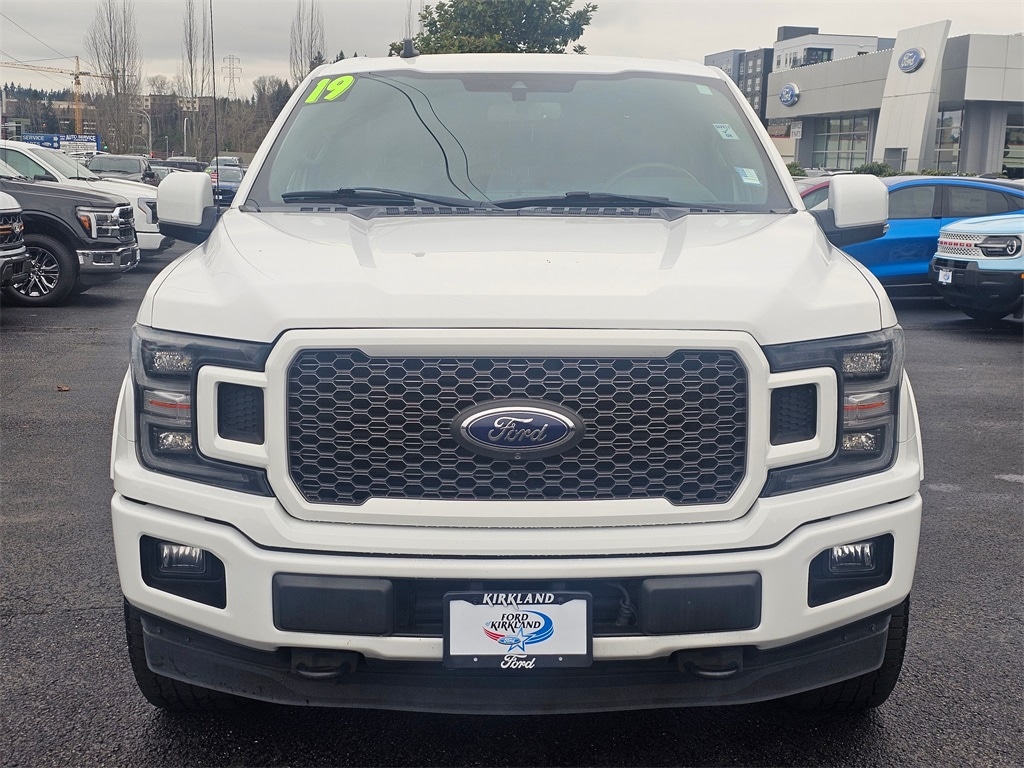 Clean CARFAX. 4WD, 4x4 FX4 Off-Road Bodyside Decal, ABS brakes, Active Park Assist, Alloy wheels, Black Running Boards, Body-Color Surround Grille w/Tarnished Dark Mesh, Class IV Trailer Hitch Receiver, Compass, Electronic Locking w/3.55 Axle Ratio, Electronic Stability Control, Engine Oil Cooler, Extended Range 36 Gallon Fuel Tank, Front dual zone A/C, FX4 Off-Road Package, Heated door mirrors, Heated front seats, Hill Descent Control, Illuminated entry, Integrated Trailer Brake Controller, Lane-Keeping System, Lariat Special Edition Package, Low tire pressure warning, Max Trailer Tow Package, Off-Road Tuned Front Shock Absorbers, Pro Trailer Backup Assist, Remote keyless entry, Technology Package, Traction control, Tray Style Floor Liner, Twin Panel Moonroof, Unique Bodyside & Hood Decals, Unique Special Edition 40/Console/40 Front Seats, Upgraded Front Stabilizer Bar, Wheels: 20" Unique Premium Tarnished Dark Painted. 2019 Ford F-150 Lariat 3.5L V6 EcoBoost 10-Speed Automatic 4WD 4D SuperCrew Oxford White