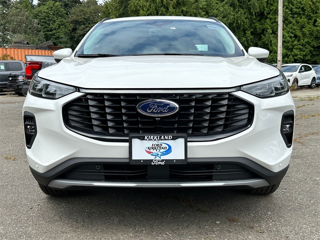 Clean CARFAX. 2.5L iVCT, 2.91 Axle Ratio, 4-Wheel Disc Brakes, 6 Speakers, ABS brakes, Active Park Assist 2.0, Air Conditioning, Alloy wheels, AM/FM radio: SiriusXM, AM/FM Stereo, Auto High-beam Headlights, Auto-dimming Rear-View mirror, Automatic temperature control, Brake assist, Bumpers: body-color, Compass, Delay-off headlights, Driver door bin, Driver vanity mirror, Dual front impact airbags, Dual front side impact airbags, Electronic Fuel Door Release, Electronic Stability Control, Emergency communication system: SYNC 4 911 Assist, Equipment Group 600A, Exterior Parking Camera Rear, FordPass Connect, Four wheel independent suspension, Front anti-roll bar, Front Bucket Seats, Front Center Armrest, Front dual zone A/C, Front fog lights, Front License Plate Bracket, Front reading lights, Fully automatic headlights, Garage door transmitter, HD Radio, Head-Up Display, Heated ActiveX Trimmed Front Sport Contour Bucket Seats, Heated door mirrors, Heated front seats, Heated Leather-Trimmed Front Sport Contour Seats, Heated steering wheel, Illuminated entry, Knee airbag, Low tire pressure warning, Memory seat, Navigation system: Connected Navigation, Neutral Towing Capability, Occupant sensing airbag, Outside temperature display, Overhead airbag, Overhead console, Panic alarm, Passenger door bin, Passenger vanity mirror, Pedestrian Alert Sounder, Power door mirrors, Power driver seat, Power Liftgate, Power passenger seat, Power steering, Power windows, Premium Technology Package, Radio data system, Radio: B&O Sound System by Bang & Olufsen, Rain sensing wipers, Rear anti-roll bar, Rear reading lights, Rear seat center armrest, Rear window defroster, Rear window wiper, Remote keyless entry, Roof rack: rails only, Security system, Speed control, Speed-sensing steering, Speed-Sensitive Wipers, Split folding rear seat, Spoiler, Steering wheel mounted audio controls, SYNC 4 w/Enhanced Voice Recognition, Tachometer, Telescoping steering wheel, Tilt steering wheel, Traction control, Trip computer, Variably intermittent wipers, Wheels: 19" Machined-Face Aluminum, 2.5L iVCT. 2024 Ford Escape Hybrid Platinum 2.5L iVCT eCVT AWD 4D Sport Utility Star White Metallic Tri-Coat
