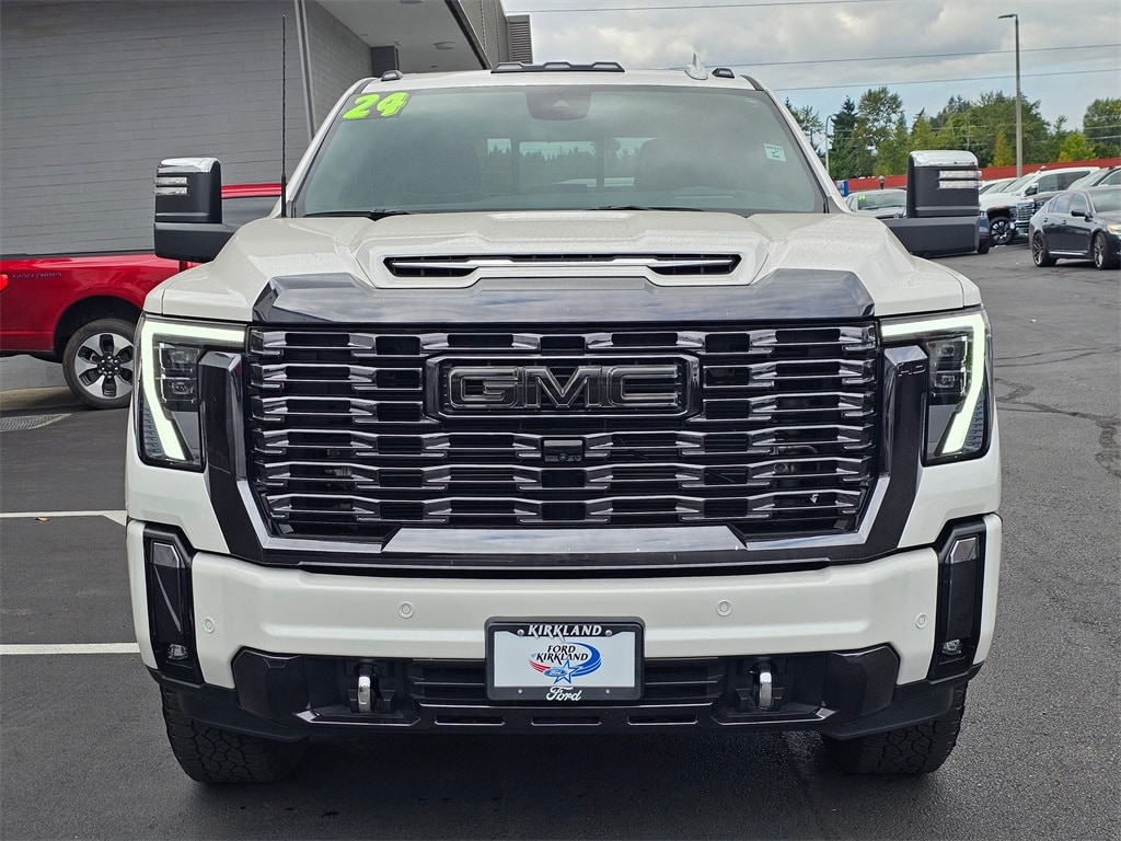 Clean CARFAX. CARFAX One-Owner. Odometer is 3726 miles below market average! 10-Speed Automatic, 4WD, Alpine Umber Leather, Dual 220-Amps Primary/170-Amps Aux Alternators, Gooseneck/5th Wheel Prep Package, High Idle Switch, 12 Speakers, 120-Volt Bed Mounted Power Outlet, 120-Volt Instrument Panel Power Outlet, 16-Way Power Driver Seat Adjuster w/Lumbar, 16-Way Power Passenger Seat Adjuster w/Lumbar, 2 Charge-Only Rear USB Ports, 2 Charge/Data USB Ports Inside Center Console, 2 USB Ports, 2-Speed Active Transfer Case, 220 Amp Alternator, 3.42 Rear Axle Ratio, 4-Wheel Disc Brakes, ABS brakes, Air Conditioning, All-Weather Floor Liners (LPO), Alloy wheels, AM/FM radio: SiriusXM with 360L, Apple CarPlay/Android Auto, Auto High-beam Headlights, Auto-dimming door mirrors, Auto-Dimming Inside Rearview Mirror w/Camera, Auto-dimming Rear-View mirror, Automatic Emergency Braking, Automatic temperature control, Bed View Camera w/2 Trailer Camera Provisions, Black Front & Rear Molded Splash Guards (LPO), Block heater, Bose Premium Series 12-Speaker System, Brake assist, Buckle to Drive, Bumpers: body-color, Cargo Convenience Package, Cargo Tie-Down Rings (Set of 4) (LPO), Compass, Console-Mounted Safe (LPO), Deep-Tinted Glass, Delay-off headlights, Driver door bin, Driver Memory, Driver vanity mirror, Dual front impact airbags, Dual front side impact airbags, Dual Heavy-Duty 70 Amp-Hr Battery, Electric Rear-Window Defogger, Electronic Stability Control, Emergency communication system: OnStar and GMC connected services capable, Floor-Mounted Center Console, Following Distance Indicator, Forward Collision Alert, Front anti-roll bar, Front Bucket Seats, Front Center Armrest, Front dual zone A/C, Front fog lights, Front License Plate Kit, Front Pedestrian Braking, Front Rain-Sensing Wipers, Front reading lights, Front wheel independent suspension, Full Grain Leather Seat Trim, Fully automatic headlights, Garage door transmitter, Genuine wood dashboard insert, Genuine wood door panel insert, GMC MultiPro Tailgate Step Lights (LPO), GMC Premium 13.4" Diagonal Information Display, GMC Protection Package (LPO), HD Surround Vision, Heads-Up Display, Heated 2nd Row Outboard Seats, Heated door mirrors, Heated Driver & Front Outboard Passenger Seats, Heated front seats, Heated rear seats, Heated steering wheel, Hill Descent Control, Hitch Guidance w/Hitch View, Illuminated entry, In-Vehicle Trailering App, Integrated Trailer Brake Controller, IntelliBeam Automatic High Beam On/Off, Keyless Open & Start, Lane Departure Warning System, Leather steering wheel, LED Cargo Area Lighting, LED Smoked Amber Roof Marker Lamps, Low tire pressure warning, Manual Tilt-Wheel/Telescoping Steering Column, Memory seat, Multicolor 15" Diagonal Head-Up Display, Occupant sensing airbag, Off-Road Suspension, Outside temperature display, Overhead airbag, Overhead console, Panic alarm, Passenger door bin, Passenger vanity mirror, Pickup Bed, Power door mirrors, Power driver seat, Power Front Windows w/Passenger Express Up/Down, Power moonroof, Power passenger seat, Power Sliding Rear Window w/Defogger, Power steering, Power Sunroof, Power windows, Preferred Equipment Group 5SB, Premium audio system: Premium GMC Infotainment System, ProGrade Trailering System, Push Button Start, Radio: AM/FM w/Premium GMC Infotainment System, Rain sensing wipers, Rear Cross Traffic Alert, Rear reading lights, Rear seat center armrest, Rear step bumper, Rear Underseat Storage (LPO), Rear Wheelhouse Liners, Rear window defroster, Remote keyless entry, Remote Vehicle Starter System, Safety Alert Seat, Security system, Signature Denali Grille in Vader Chrome, SiriusXM w/360L, Speed control, Speed-sensing steering, Split folding rear seat, Spray-On Pickup Bedliner w/Denali Logo, Steering Wheel Audio Controls, Steering wheel mounted audio controls, Tachometer, Technology Package, Telescoping steering wheel, Tilt steering wheel, Traction control, Trailer Camera Provisions, Trailer Side Blind Zone