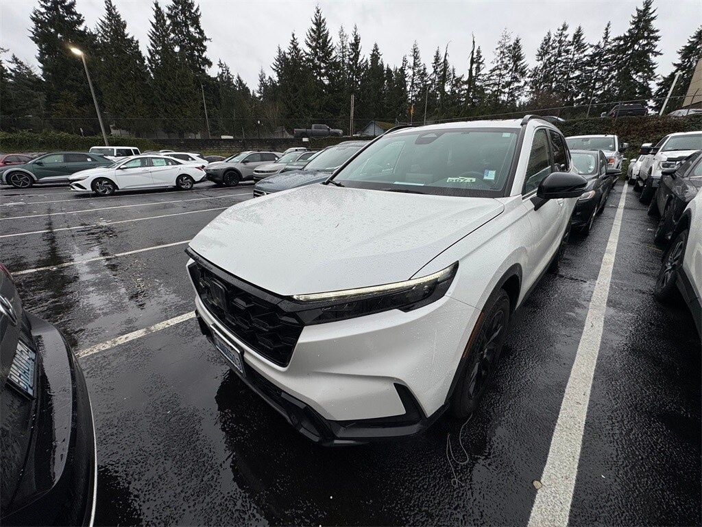 Recent Arrival! CARFAX One-Owner. Odometer is 20247 miles below market average! ONE OWNER, Apple CarPlay, 2.0L I4 DOHC 16V, Power moonroof, 4-Wheel Disc Brakes, 4.438 Axle Ratio, 8 Speakers, ABS brakes, Adaptive Cruise Control: Adaptive Cruise Control (ACC) with Low-Speed Follow, Air Conditioning, Alloy wheels, AM/FM radio: SiriusXM, Auto High-beam Headlights, Auto-dimming Rear-View mirror, Automatic temperature control, Blind Spot Information (BSI) System warning, Brake assist, Bumpers: body-color, Compass, Delay-off headlights, Driver door bin, Driver vanity mirror, Dual front impact airbags, Dual front side impact airbags, Electronic Stability Control, Exterior Parking Camera Rear, Four wheel independent suspension, Front anti-roll bar, Front Bucket Seats, Front Center Armrest, Front dual zone A/C, Front reading lights, Fully automatic headlights, Heated door mirrors, Heated Front Bucket Seats, Heated front seats, Illuminated entry, Knee airbag, Leather Seat Trim, Leather Shift Knob, Leather steering wheel, Low tire pressure warning, Memory seat, Occupant sensing airbag, Outside temperature display, Overhead airbag, Overhead console, Panic alarm, Passenger door bin, Passenger vanity mirror, Power door mirrors, Power driver seat, Power Liftgate, Power passenger seat, Power steering, Power windows, Radio data system, Radio: 320-Watt AM/FM/HD/SiriusXM Audio System, Rear anti-roll bar, Rear reading lights, Rear seat center armrest, Rear side impact airbag, Rear window defroster, Rear window wiper, Remote keyless entry, Security system, Speed control, Speed-sensing steering, Speed-Sensitive Wipers, Split folding rear seat, Spoiler, Steering wheel mounted audio controls, Telescoping steering wheel, Tilt steering wheel, Traction control, Trip computer, Turn signal indicator mirrors, Variably intermittent wipers, Wheels: 18" Berlina Black Alloy, Wireless Apple CarPlay/Wireless Android Auto, 2.0L I4 DOHC 16V, Power moonroof. 2024 Honda CR-V Hybrid Sport-L 2.0L I4 DOHC 16V eCVT AWD 4D Sport Utility Platinum White Pearl