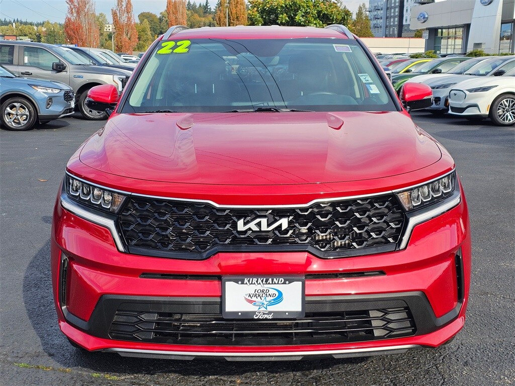 CARFAX One-Owner. 1.6L I4 DGI Hybrid Turbocharged DOHC 16V LEV3-ULEV70, 3rd row seats: split-bench, 4-Wheel Disc Brakes, 6 Speakers, ABS brakes, Air Conditioning, Alloy wheels, AM/FM radio: SiriusXM, Apple CarPlay & Android Auto, Auto High-beam Headlights, Automatic temperature control, Axle Ratio: 3.510, Brake assist, Bumpers: body-color, Cargo Net, Carpeted Floor Mats, Delay-off headlights, Driver door bin, Driver vanity mirror, Dual front impact airbags, Dual front side impact airbags, Electronic Stability Control, Emergency communication system: UVO Link, Exterior Parking Camera Rear, Four wheel independent suspension, Front anti-roll bar, Front Bucket Seats, Front Center Armrest, Front dual zone A/C, Front reading lights, Fully automatic headlights, Heated door mirrors, Heated Front Bucket Seats, Heated front seats, Illuminated entry, Knee airbag, Leather steering wheel, Low tire pressure warning, Navigation System, Occupant sensing airbag, Outside temperature display, Overhead airbag, Overhead console, Panic alarm, Passenger door bin, Passenger vanity mirror, Power door mirrors, Power driver seat, Power steering, Power windows, Radio data system, Radio: AM/FM Audio System, Rear air conditioning, Rear anti-roll bar, Rear reading lights, Rear window defroster, Rear window wiper, Remote keyless entry, Roof rack: rails only, Security system, Smart Key w/ Push Button and Remote Start, Speed control, Speed-sensing steering, Split folding rear seat, Spoiler, Steering wheel mounted audio controls, SynTex Artificial Leather Seat Trim, Tachometer, Telescoping steering wheel, Tilt steering wheel, Traction control, Trip computer, Turn signal indicator mirrors, Variably intermittent wipers, Wheels: 7.0J x 17" Machine-Finished Aero Alloy, 1.6L I4 DGI Hybrid Turbocharged DOHC 16V LEV3-ULEV70. 2022 Kia Sorento Hybrid S 1.6L I4 DGI Hybrid Turbocharged DOHC 16V LEV3-ULEV70 6-Speed Automatic AWD 4D Sport Utility Runway Red