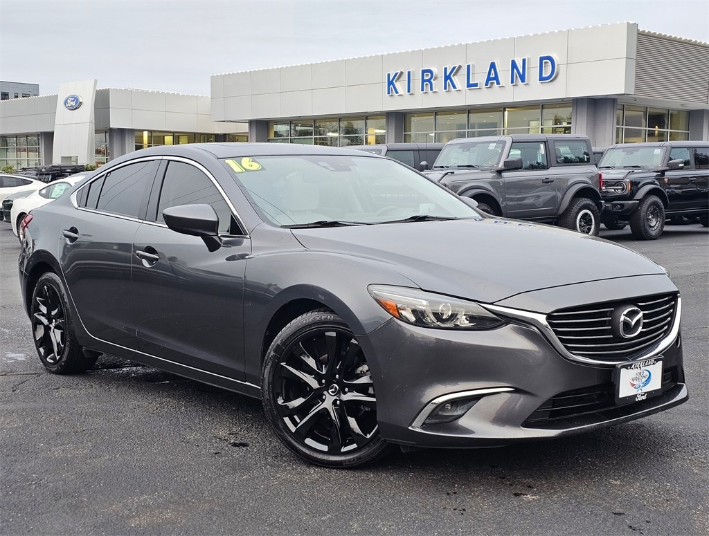 Recent Arrival! 11 Speakers, 3 Level Heated Reclining Front Sport Bucket Seats, 4-Wheel Disc Brakes, ABS brakes, Air Conditioning, Alloy wheels, AM/FM radio: SiriusXM, Anti-whiplash front head restraints, Auto-dimming door mirrors, Auto-dimming Rear-View mirror, Automatic temperature control, Brake assist, Bumpers: body-color, CD player, Compass, Delay-off headlights, Driver door bin, Driver vanity mirror, Dual front impact airbags, Dual front side impact airbags, Electronic Stability Control, Exterior Parking Camera Rear, Four wheel independent suspension, Front anti-roll bar, Front Bucket Seats, Front Center Armrest, Front dual zone A/C, Front fog lights, Front reading lights, Fully automatic headlights, Garage door transmitter: HomeLink, Heads-Up Display, Heated door mirrors, Heated front seats, Illuminated entry, Leather Seat Trim, Leather Shift Knob, Low tire pressure warning, Memory seat, Navigation System, Occupant sensing airbag, Outside temperature display, Overhead airbag, Overhead console, Panic alarm, Passenger door bin, Passenger vanity mirror, Power door mirrors, Power driver seat, Power moonroof, Power passenger seat, Power steering, Power windows, Radio data system, Radio: AM/FM/CD/MP3/AUX BOSE 11-Speaker & HD Radio, Rain sensing wipers, Rear anti-roll bar, Rear reading lights, Rear seat center armrest, Rear window defroster, Remote keyless entry, Security system, Speed control, Speed-sensing steering, Split folding rear seat, Spoiler, Steering wheel mounted audio controls, Tachometer, Telescoping steering wheel, Tilt steering wheel, Traction control, Trip computer, Turn signal indicator mirrors, Variably intermittent wipers, Wheels: 19" Alloy w/Dark Silver Finish. 2016 Mazda Mazda6 i Grand Touring 2.5L 4-Cylinder DOHC 6-Speed Automatic FWD 4D Sedan Meteor Gray Mica