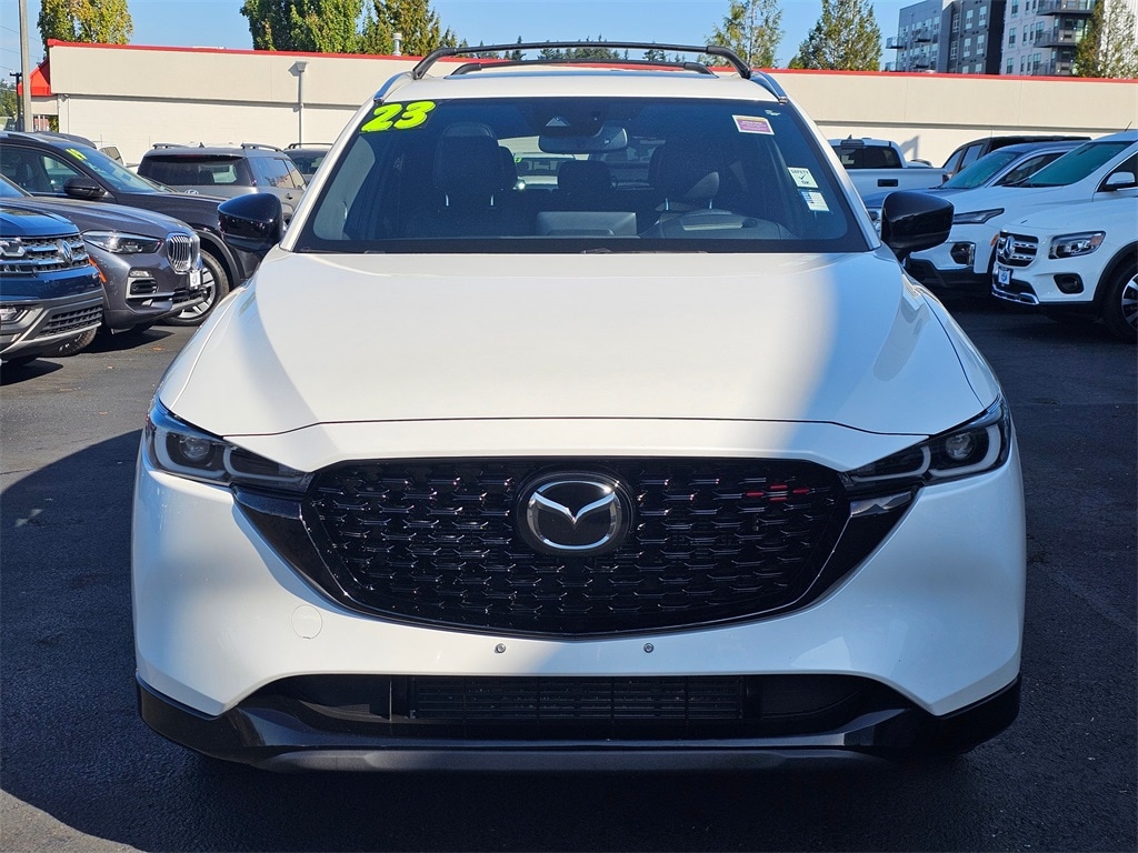 CARFAX One-Owner. 10 Speakers, 4-Wheel Disc Brakes, 4.411 Axle Ratio, ABS brakes, Air Conditioning, All-Weather Floor Mats, Alloy wheels, AM/FM radio: SiriusXM, AppLink/Apple CarPlay and Android Auto, Auto High-beam Headlights, Auto-dimming Rear-View mirror, Automatic temperature control, Brake assist, Bumpers: body-color, Delay-off headlights, Driver door bin, Driver vanity mirror, Dual front impact airbags, Dual front side impact airbags, E911 Automatic Emergency Notification, Electronic Stability Control, Emergency communication system: MAZDA CONNECT, Exterior Parking Camera Rear, Four wheel independent suspension, Front anti-roll bar, Front Bucket Seats, Front Center Armrest w/Storage, Front dual zone A/C, Front reading lights, Fully automatic headlights, Garage door transmitter: HomeLink, Heads-Up Display, Heated door mirrors, Heated front seats, Heated rear seats, Heated steering wheel, Heated/Ventilated Front Bucket Seats, Illuminated entry, Infotainment System Voice Command, Leather Seat Trim, Leather Shift Knob, Low tire pressure warning, Memory seat, Multifunction Commander Control, Occupant sensing airbag, Outside temperature display, Overhead airbag, Overhead console, Pandora, Panic alarm, Passenger door bin, Passenger vanity mirror, Power door mirrors, Power driver seat, Power Liftgate, Power moonroof, Power passenger seat, Power steering, Power windows, Radio Broadcast Data System Program Information, Radio data system, Radio: AM/FM/HD Audio System, Rain sensing wipers, Rear anti-roll bar, Rear reading lights, Rear seat center armrest, Rear window defroster, Rear window wiper, Remote keyless entry, Rhodium White Metallic Paint, Roadside Assistance Kit, SMS Text Msg Audio Delivery & Reply, Speed control, Speed-sensing steering, Split folding rear seat, Spoiler, Steering wheel mounted audio controls, Tachometer, Telescoping steering wheel, Tilt steering wheel, Traction control, Trip computer, Turn signal indicator mirrors, Variably intermittent wipers, Ventilated front seats, Wheels: 19" x 7J Aluminum Alloy. 2023 Mazda CX-5 2.5 Turbo 2.5L I4 6-Speed Automatic AWD 4D Sport Utility Rhodium White Metallic