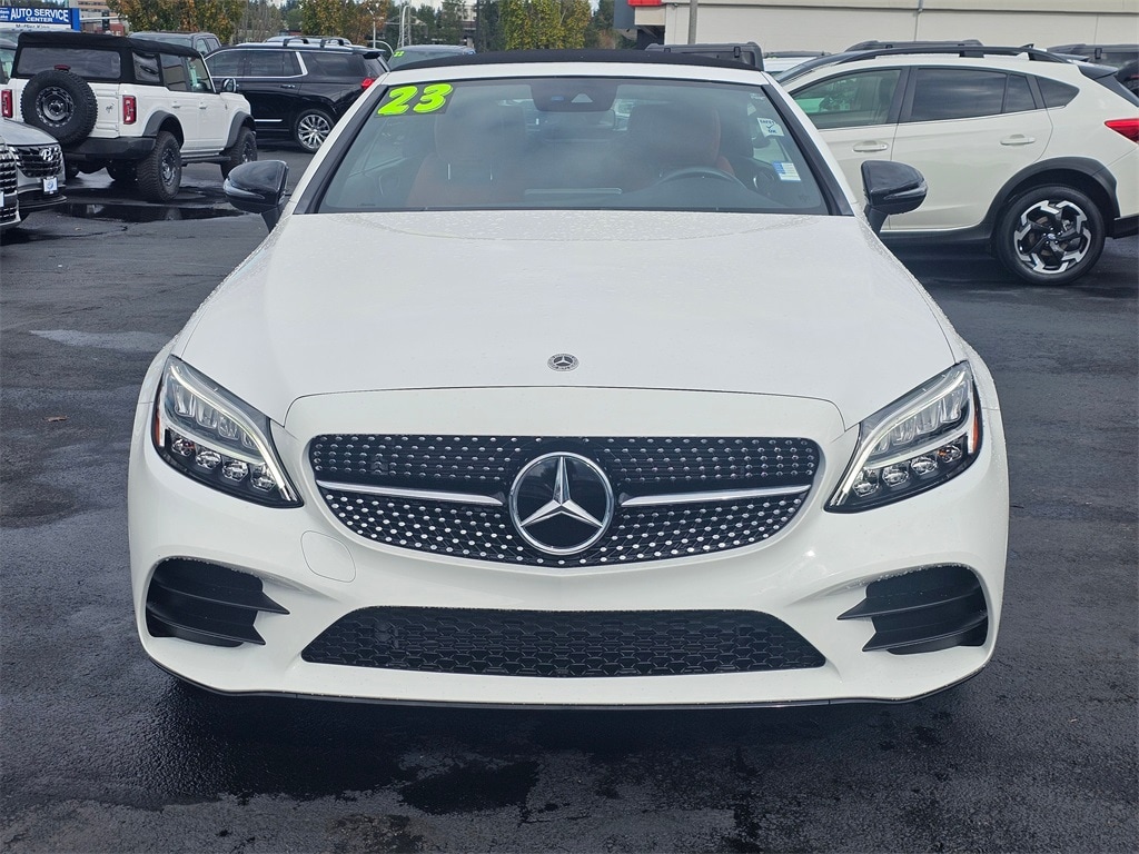 Clean CARFAX. Odometer is 12125 miles below market average! 4MATIC®, 13 Speakers, 4-Way Lumbar Support, Aluminum Pedals, AMG® Floor Mats, AMG® Line, AMG® Line Exterior, AMG® Line Interior, Auto High-beam Headlights, Automatic temperature control, Black Fabric Headliner, Black SoftTop, Burmester® Premium Sound System, COMAND® Navigation, Diamond Grille in Chrome, Exterior Parking Camera Rear, Flat-Bottom Steering Wheel, Front dual zone A/C, Fully automatic headlights, Heated door mirrors, Inductive Wireless Charging & NFC Pairing, Map Updates for 1 Year, Memory seat, Multimedia Package, Night Package, Perforated Brake Discs, Power Adjustable Passenger's Seat, Power Heated Front Seats w/Driver Memory, Rain sensing wipers, Rear fog lights, Security system, Smartphone Integration, Ventilated Front Seats, Wheels: 19" AMG® Multispoke w/Black Accents, 4-Wheel Disc Brakes, ABS brakes, Air Conditioning, Alloy wheels, AM/FM radio: SiriusXM, AM/FM Stereo, Android Auto®, Anti-whiplash front head restraints, Apple CarPlay®, Apple CarPlay®/Android Auto®, Auto tilt-away steering wheel, Auto-dimming door mirrors, Auto-dimming Rear-View mirror, Brake assist, Bumpers: body-color, Child-Seat-Sensing Airbag, Compass, Convertible roof lining, Convertible roof wind blocker, Delay-off headlights, Driver door bin, Driver vanity mirror, Dual front impact airbags, Dual front side impact airbags, Electronic Stability Control, Emergency communication system: Mercedes-Benz Emergency Call Service, Four wheel independent suspension, Front anti-roll bar, Front Bucket Seats, Front Center Armrest, Front reading lights, Garage door transmitter: HomeLink, Genuine wood console insert, Genuine wood dashboard insert, Genuine wood door panel insert, Glass rear window, HD-Radio, Head restraints memory, Heated front seats, Illuminated entry, Integrated roll-over protection, Knee airbag, Low tire pressure warning, MB-Tex Upholstery, Occupant sensing airbag, Outside temperature display, Overhead airbag, Overhead console, Panic alarm, Passenger door bin, Passenger vanity mirror, Power adjustable front head restraints, Power convertible roof, Power door mirrors, Power driver seat, Power passenger seat, Power steering, Power windows, Radio data system, Rear anti-roll bar, Rear side impact airbag, Rear window defroster, Remote keyless entry, SiriusXM Radio, Speed control, Speed-sensing steering, Split folding rear seat, Steering wheel memory, Steering wheel mounted audio controls, Tachometer, Telescoping steering wheel, Tilt steering wheel, Traction control, Trip computer, Turn signal indicator mirrors, Variably intermittent wipers, Weather band radio, 4MATIC®, 13 Speakers, 4-Way Lumbar Support, Aluminum Pedals, AMG® Floor Mats, AMG® Line, AMG® Line Exterior, AMG® Line Interior, Auto High-beam Headlights, Automatic temperature control, Black Fabric Headliner, Black SoftTop, Burmester® Premium Sound System, COMAND® Navigation, Diamond Grille in Chrome, Exterior Parking Camera Rear, Flat-Bottom Steering Wheel, Front dual zone A/C, Fully automatic headlights, Heated door mirrors, Inductive Wireless Charging & NFC Pairing, Map Updates for 1 Year, Memory seat, Multimedia Package, Night Package, Perforated Brake Discs, Power Adjustable Passenger's Seat, Power Heated Front Seats w/Driver Memory, Rain sensing wipers, Rear fog lights, Security system, Smartphone Integration, Ventilated Front Seats, Wheels: 19" AMG® Multispoke w/Black Accents. 2023 Mercedes-Benz C-Class C 300 4MATIC® 2.0L I4 Turbocharged 9-Speed Automatic 4MATIC® 2D Convertible Polar White