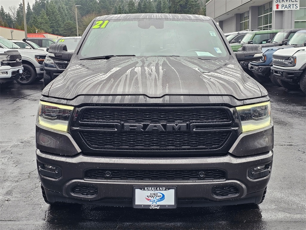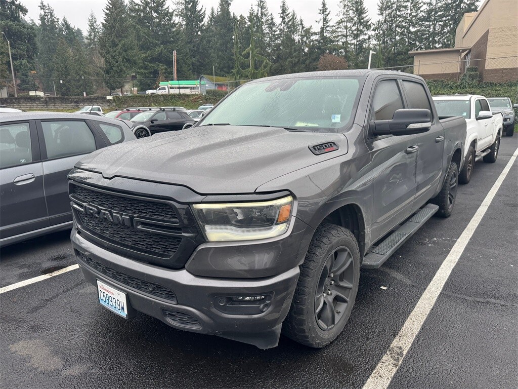Recent Arrival! Clean CARFAX. CARFAX One-Owner. 1-Yr SiriusXM Guardian Trial, 115V Auxiliary Power Outlet, 12" Touchscreen Display, 3 Rear Seat Head Restraints, 3.21 Rear Axle Ratio, 33 Gallon Fuel Tank, 4 Way Front Headrests, 4-Wheel Disc Brakes, 40/20/40 Split Bench Seat, 400W Inverter, 48V Belt Starter Generator, 4G LTE Wi-Fi Hot Spot, 5-Year SiriusXM Traffic Service, 5-Year SiriusXM Travel Link Service, 6 Speakers, 9 Amplified Speakers w/Subwoofer, ABS brakes, Add Class IV Receiver Hitch, Advanced Brake Assist, Air Conditioning, Alloy wheels, AM/FM radio, Anti-Spin Differential Rear Axle, Apple CarPlay, Auto-Dimming Rear-View Mirror, Big Horn Level 2 Equipment Group, Black Exterior Mirrors, Brake assist, Bumpers: chrome, Class IV Receiver Hitch, Cloth Bench Seat, Cluster 3.5" TFT Color Display, Compass, Delay-off headlights, Deluxe Cloth Bucket Seats, Disassociated Touchscreen Display, Dome Dual LED Reading Lamp, Driver door bin, Dual front impact airbags, Dual front side impact airbags, Dual-Pane Panoramic Sunroof, Electronic Stability Control, For Details, Visit DriveUconnect.com, For More Info, Call 800-643-2112, Front anti-roll bar, Front Center Armrest w/Storage, Front fog lights, Front LED Fog Lamps, Front License Plate Bracket, Front reading lights, Front Seat Back Map Pockets, Front wheel independent suspension, Full Speed Forward Collision Warning Plus, Fully automatic headlights, Google Android Auto, GPS Antenna Input, GPS Navigation, HD Radio, Heads-Up Display, Heated door mirrors, Illuminated entry, Integrated Center Stack Radio, Integrated Voice Command w/Bluetooth, Lane Keep Assist, Leather steering wheel, LED CHMSL Lamp, LED Footwell Lighting, LED Reflector Headlamps, LED Taillamps, Level 1 Safety Group, Low tire pressure warning, Manufacturer's Statement of Origin, Night Edition, Occupant sensing airbag, Outside temperature display, Overhead airbag, Overhead console, Overhead LED Lamps, Panic alarm, ParkSense Front/Rear Park Assist w/Stop, ParkView Rear Back-Up Camera, Passenger door bin, Passenger vanity mirror, Pedestrian Emergency Braking, Power door mirrors, Power steering, Power windows, Premium Lighting Group, Premium Overhead Console, Quick Order Package 28Z Big Horn, Radio data system, Radio: Uconnect 12 w/Navigation, Radio: Uconnect 3 w/5" Display, Rear 60/40 Folding Seat, Rear anti-roll bar, Rear seat center armrest, Rear step bumper, Rearview Autodim Digital Display Mirror, Remote keyless entry, Remote Start System, SiriusXM Radio Service, SiriusXM Satellite Radio, SiriusXM Traffic Plus, SiriusXM Travel Link, SiriusXM w/360L, Speed control, Split folding rear seat, Steering wheel mounted audio controls, Tachometer, Technology Group, Telescoping steering wheel, Tilt steering wheel, Traction control, Trailer Brake Control, Trailer Light Check, Trailer Tire Pressure Monitoring System, Trailer Tow Group, Trip computer, USB Host Flip, Variably intermittent wipers, Voltmeter, Wheels: 18" x 8" Cast-Aluminum Painted, Wheels: 20" x 9.0" Premium Paint/Polished. 2021 Ram 1500 Big Horn/Lone Star EcoDiesel 3.0L V6 8-Speed Automatic 4WD 4D Crew Cab Granite Crystal Metallic Clearcoat