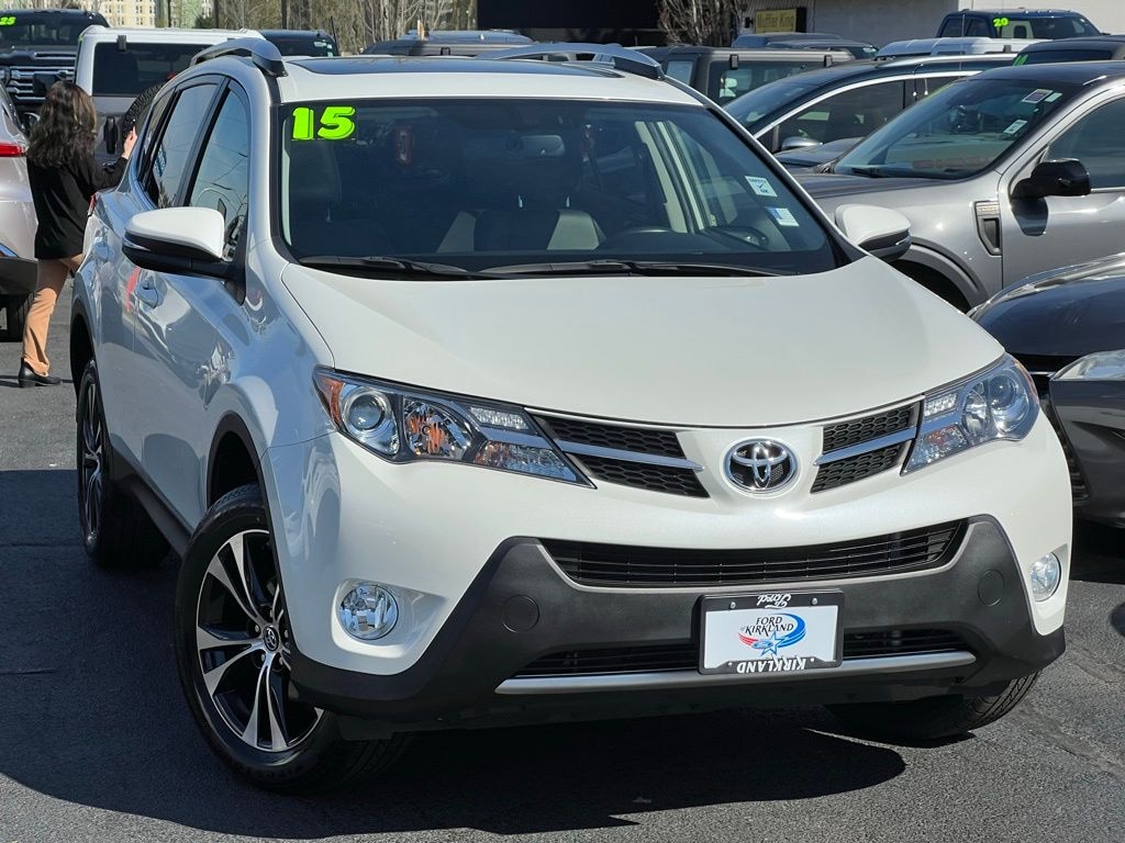 Odometer is 41774 miles below market average! AWD, Black w/SofTex Seat Trim, 4-Wheel Disc Brakes, 4.071 Axle Ratio, 6 Speakers, ABS brakes, Air Conditioning, Alloy wheels, AM/FM radio: SiriusXM, Auto-dimming Rear-View mirror, Automatic temperature control, Brake assist, Bumpers: body-color, CD player, Driver door bin, Driver vanity mirror, Dual front impact airbags, Dual front side impact airbags, Electronic Stability Control, Exterior Parking Camera Rear, Four wheel independent suspension, Front anti-roll bar, Front Bucket Seats, Front Center Armrest, Front dual zone A/C, Front fog lights, Front reading lights, Fully automatic headlights, Heated door mirrors, Heated front seats, Heated Front Sport Seats, Illuminated entry, Knee airbag, Leather Shift Knob, Leather steering wheel, Low tire pressure warning, Memory seat, Navigation System, Occupant sensing airbag, Outside temperature display, Overhead airbag, Overhead console, Panic alarm, Passenger door bin, Passenger vanity mirror, Power door mirrors, Power driver seat, Power Liftgate, Power moonroof, Power steering, Power windows, Radio data system, Radio: Entune Premium Audio with Navigation, Rear anti-roll bar, Rear seat center armrest, Rear window defroster, Rear window wiper, Remote keyless entry, Roof rack: rails only, SofTex Seat Trim, Speed control, Speed-sensing steering, Split folding rear seat, Spoiler, Steering wheel mounted audio controls, Tachometer, Telescoping steering wheel, Tilt steering wheel, Traction control, Trip computer, Turn signal indicator mirrors, Variably intermittent wipers, Wheels: 18" x 7.5J Alloy ALM, AWD, Black w/SofTex Seat Trim. 2015 Toyota RAV4 Limited 2.5L 4-Cylinder DOHC Dual VVT-i 6-Speed Automatic AWD 4D Sport Utility Blizzard Pearl