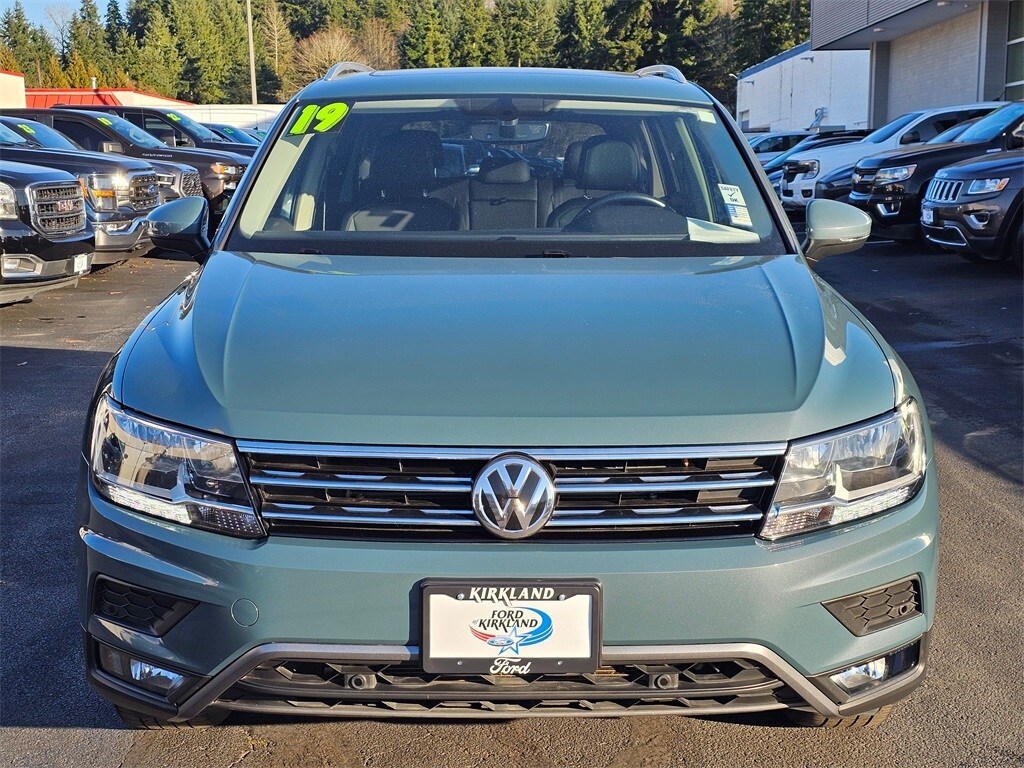 Clean CARFAX. Odometer is 20172 miles below market average! AWD, ABS brakes, Active Cruise Control, Alloy wheels, Compass, Electronic Stability Control, Front dual zone A/C, Heated door mirrors, Heated Front Comfort Seats, Heated front seats, Illuminated entry, Low tire pressure warning, Navigation System, Power Liftgate, Power moonroof, Remote keyless entry, Traction control. 2019 Volkswagen Tiguan 2.0T SEL 4Motion 2.0L TSI DOHC 8-Speed Automatic with Tiptronic AWD 4D Sport Utility Stone Blue Metallic
